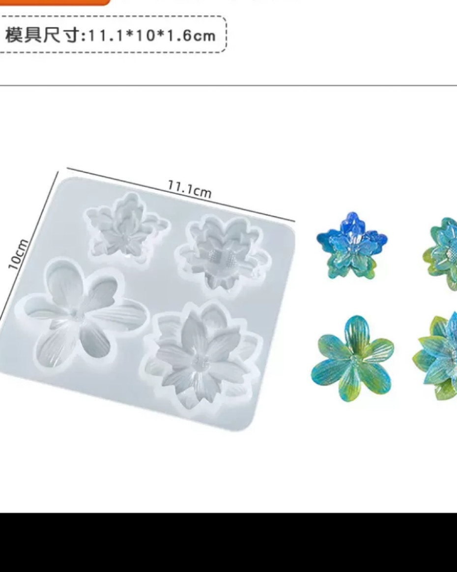 This versatile tray features four unique blooming designs, perfect for crafting resin jewelry, keychains, or wax melts.