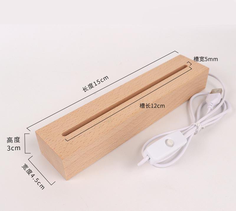 Luminous rectangular night light base wooden USB switch base acrylic 3d lighting wooden base, wooden led light display