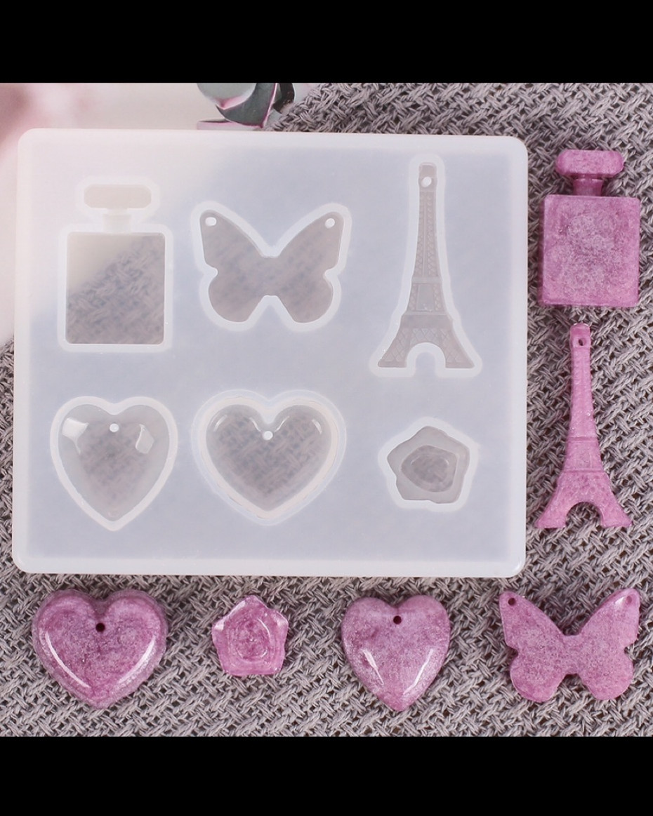 This multi-design silicone tray allows you to create high-detail pendants and earrings featuring the iconic Eiffel Tower, chic perfume bottles, butterflies, and hearts. Designed for precision, each cavity includes a built-in hanging hole, making it easier than ever to turn your resin art into wearable masterpieces.